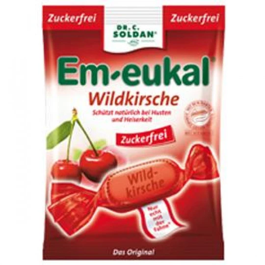 Zutatenverzeichnis: Süßungsmittel: Isomalt, Säuerungsmittel: Zitronensäure, natürliche Aromen, Kirschsaftkonzentrat 0,2 g/100 g**, Wildkirschrindenextrakt, Menthol, Eukalyptusöl, Süßungsmittel: Sucralose **entspricht 1% Fruchtsaftanteil. Kann bei übermäßigem Verzehr abführend wirken.